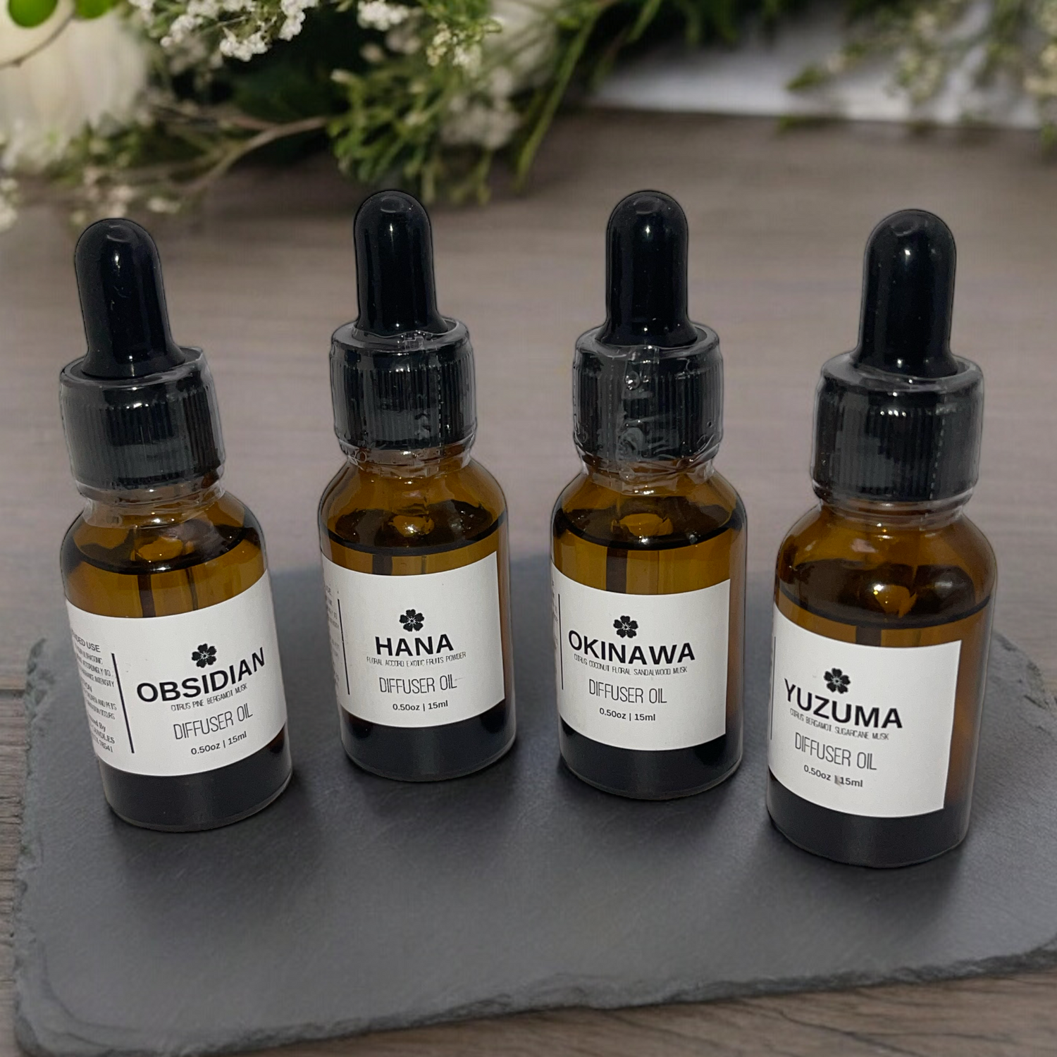 Our Diffuser Oils are crafted with care using only the finest, premium ingredients. The result is a beautifully balanced fragrance that gently fills your space with a soothing, long-lasting aroma. Free from harsh chemicals or artificial scents—just pure, luxurious oils to elevate your environment.